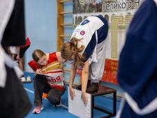 Судейская бригада отмечает наилучшие результаты в отдельных видах программы – Лобанова Елизавета - наклон 28 см, Цветков Никита - прыжок 256 см, Вередина Дарья - поднимание туловища за 1 минуту 67 раз, Андрюк Александр в этом же виде показал результат: 61 раз.