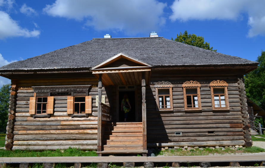 Интерьер зимней белой избы даёт представление о традиционном жилище, характеризующемся встроенной неподвижной мебелью, функциональностью и четкой закреплённостью в определенном месте каждого предмета убранства. В зимней избе сохранились подлинные полати, полавочники, почти все лавки. Рядом с печью располагается лестница в «подпол» или «подполье», где находилась картофельная яма. Лестницу от избы отделяет «голбец» – дощатая перегородка и расписная дверь.